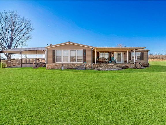 5 acres on the edge of town. Very nice manufactured home with several nice outbuildings. The home has an open concept floor plan with 3 bedrooms and 2 full baths. The master bedroom and bath are on one end of the house and the 2 other bedrooms are on the other. 2 living areas. Kitchen features a bistro snack bar with custom made bar stools and SS appliances. Wood burning fireplace. A large covered deck is attached to the house. Outbuildings include a 30' x 40' barn/man cave complete with electricity, bathroom, and a meat room for cleaning your wildlife. Also a 24' x 12.5' house with kitchen & bathroom, 4-bay open barn, carport, storage building, storm cellar, and more. Paved roads. 25 minutes from AAFB.