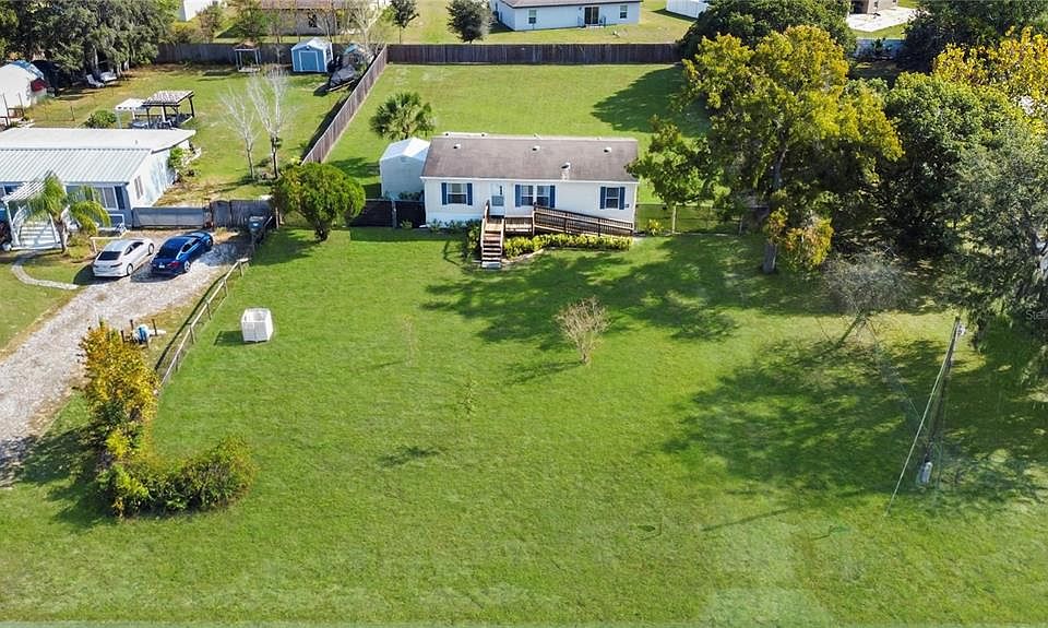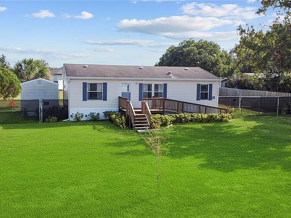 Finally, a cute 3/2 home option with no HOA, a beautiful 1/2 acre lot & in move-in ready condition! This sprawling lot is nice and level with a fenced backyard. Low-maintenance bahia grass is ideal in Florida and plays well with the climate, which means no high water bills trying to keep it alive! This accessible home has both stairs and an entry ramp to the front and rear door. Inside the home opens into a large great room with the kitchen facing the backyard. This open concept feels spacious and bright with luxury vinyl plank throughout! A breakfast bar/island is a great spot to hang out and eat along with the nook that accommodates your table and chairs. The cabinets are plentiful in a neutral wood with new countertops. The laundry room sits o? to the left with additional storage and access to the backyard. All appliances convey. The primary suite overlooks the front yard with a private bathroom and walk in closet. The two additional bedrooms share a full bath and linen closet. The backyard also has additional storage with an 11x12 metal building and a covered work area. Truly a fantastic piece of property where you can continue to grow whether you decide to add on to the house, add a pool, or finally get some chickens! Located in Leesburg in beautiful Lake County, bring your boat or jet skis and enjoy one of the many lakes on the nearby Harris Chain, including Lake Harris, Lake Griffin, and Lake Eustis. Whether you’re into boating or fishing, you’ll love the ability to visit different cities and even access the intracoastal waterway! Another luxury to being nestled in the center of the state, you’re just 2 hours to either Florida Coast!