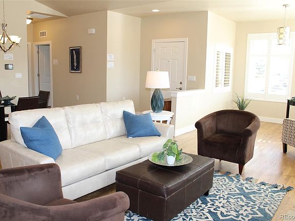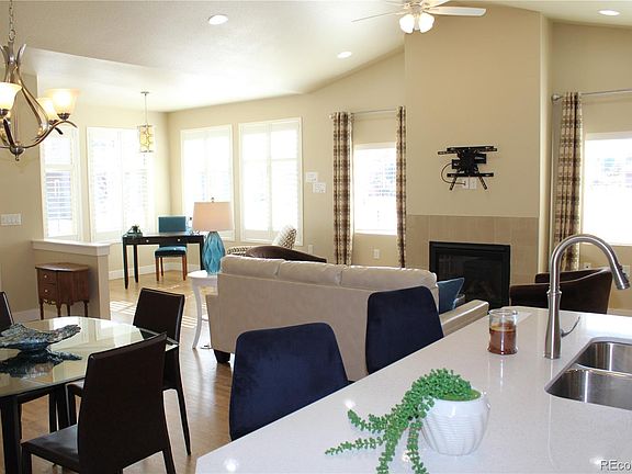 A fabulous club house with pool and weekly activities will keep all community residents engaged with social and happy hour activities all year long! Become the proud new owner of this fabulous 2-bedroom, 2-bathroom home in Thornton! No steps and has 36 inch wide doors throughout for an easy living lifestyle. The charming interior offers an inviting ambiance with 9 foot ceilings, showcasing plantation shutters, wood flooring, neutral palette, vaulted ceilings, and recessed lighting that illuminates every corner. The delightful fireplace complements the expansive great room, making entertaining a bliss! The open-concept kitchen displays stainless steel appliances, a convenient pantry, quartz counters, and a center island with a breakfast bar seating so you can still engage in conversation while cooking. The cabinets are 42 inches in height and offer plenty of storage space. Discover a perfectly sized primary bedroom, complete with plush carpet in all the right places, a private bathroom with dual sinks, a walk in shower with handles, and a large walk-in closet. The oversized 2-car garage has a finished interior and includes an interior water spicket and no steps leading into the house. Enjoy the lovely open green space surrounding the community with club house and pool. Just a short distance to Eastlake Reservoir, tennis courts, shopping and restaurants. Don't let this excellent deal slip by! Just pack your bags and move in!