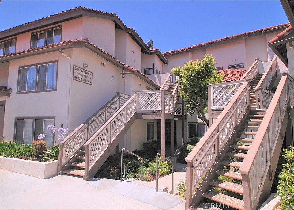 Gated community of Allegro Villas, on the border line of Diamond Bar and Phillips Ranch. Premium view location! A spectacular home with a panoramic view, city lights and mountains. A very well-kept upstairs condominium with a bedroom and living area on the main level and a spiral staircase leading to a loft. Nicely upgraded with laminate wood entry which flows through the kitchen. New kitchen cabinets, granite counter tops, recessed lighting, & stainless-steel electric appliances. The kitchen has a handy breakfast bar and eating area adjacent the living room with cathedral ceilings. A fireplace warms the living area. A dramatic balcony via a slider off of the living room comes with room for a barbeque and looks over the valley below. Plush carpet in the living room, bedroom, and loft. The loft has a spiral staircase and accommodates an office with built in storage or use as a work-out room. The master suite has a full bath with twin sinks and a tiled shower with tub. The bathroom can be accessed from the hallway too. Vaulted ceilings, recessed lights, and a private view balcony makes this room a retreat! Indoor laundry area with washer and dryer included. A reserved parking space marked 3563 is about 8 spaces to the east, while the shared garage (shared with one other neighbor) is at the bottom of the steps. Easy freeway access to the 57, 10, 60, 210, and 71. Nearby shopping and restaurants, Starbucks, bus stops and more. Water and trash is included in the HOA dues.