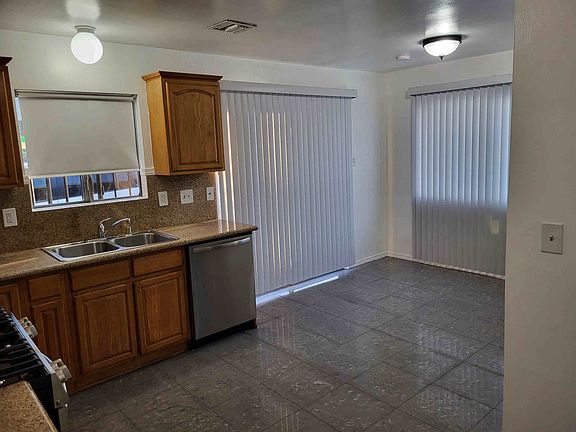 MOVE IN READY This 2 bedroom and 1 bath with 2 parking spaces single-story house is the back unit of the gated duplex complex. The house is well maintained. It has been freshly painted with laminated wood floor in both bedrooms and tile in the remaining area. Granite counter tops throughout with brand new stainless steel cooking range and dishwasher; has dryer and washer hook-up with central A/C and heating. Landlord will be responsible for water and trash costs. Tenant pays for gas and electricity. No Pet.