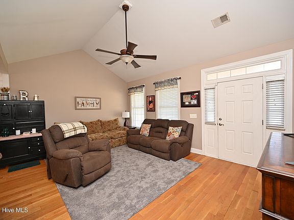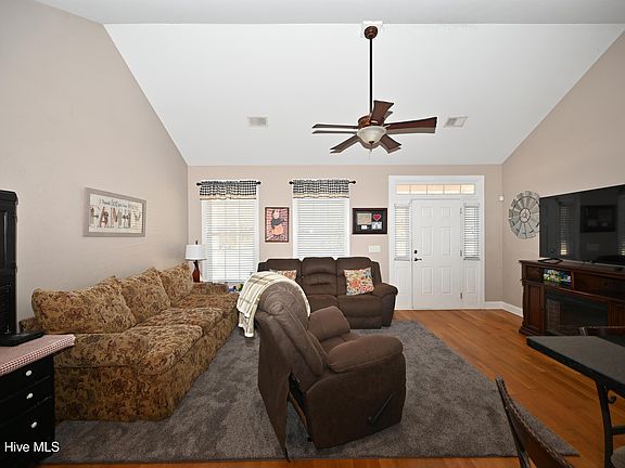 This stunning all-brick home sits on approximately 2.29 acres and features four bedrooms and three full bathrooms. The master bedroom boasts elegant tray ceilings, while the living room showcases soaring vaulted ceilings. The kitchen is equipped with granite countertops and recently updated stainless steel appliances. With no HOA and just an estimated one hour drive from the beach, this property offers both freedom and convenience. The garage has been converted into a versatile game room or flex space, complete with a heated and cooled window unit for year-round comfort.