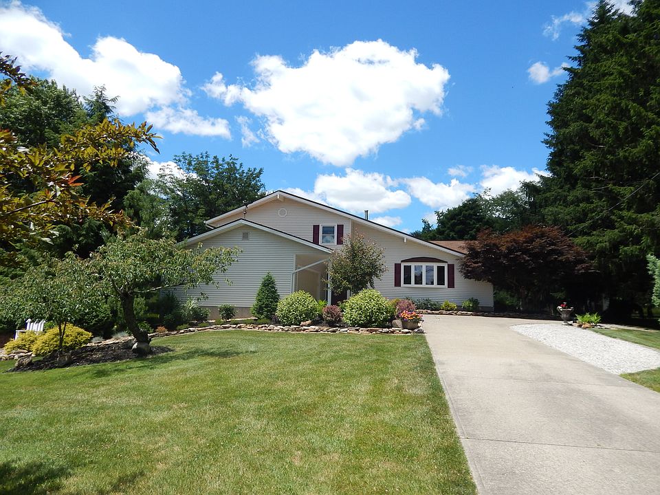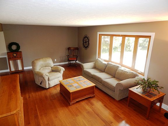 This awesome split-level is nestled on 2 incredibly beautifully landscaped acres complete w/a pond, tiered deck w/benches, newer stone patio, and fire pit. This spectacular home has numerous updates and remodeling. A newer tile entry leads you into a spacious Family Room with tile and carpet and is complimented with a custom stone gas log fireplace and beverage bar with granite. The inviting L-shaped Living Room and Dining Room feature 3/4" hardwood and a bay window. The updated Kitchen also has hardwood flooring, granite, and a tile backsplash. A fabulous owners suite offers a double closet, large walk-in closet, and a newer deluxe bath w/ granite. The Bedrooms have newer carpet. The updated main bath includes a newer vanity w/granite, tub/shower, and a large closet. Bedroom 4 is on the 1st level with hickory wood flooring and is currently being used as an office.There is a 12x16 storage shed w/a 12' overhang. Enjoy the fruit trees along with blueberry and raspberry bushes. Excellent highway access. Refurbished well and septic, newer water soft. 6/16