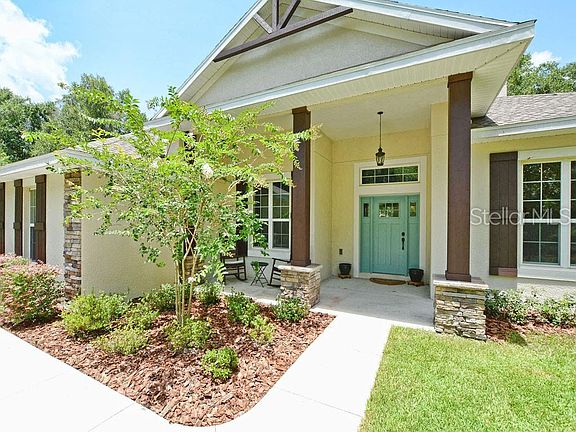 4 Bd /2 Ba custom built home located within the desirable Lake Seneca Reserve on a quiet cul-de-sac with beautiful Oak trees scattered among the 4.3 acre lot. A fully paved driveway leads you beyond the trees to this secluded home with a well-manicured lawn, stone finishes, 2 car side entry garage, rich brown wood columns showcasing the covered front porch and spacious entryway. Upon entry, natural light fills the open concept floorplan with many high end features such as wood grain tile throughout, floor to ceiling stone finished gas fireplace, tall and vaulted ceiling with wooden accent beams, crown molding throughout and upgraded kitchen appliances and fixtures. The kitchen features 42" cabinets, granite countertops, farmhouse style sink, spacious closet pantry, breakfast nook, a bar offering additional dining space and a kitchen island. The master bedroom boasts a beamed accented trey ceiling, provides access to the spacious screened lanai, ensuite bathroom with dual vanity, clawfoot tub and floor to ceiling tile shower. Bedrooms 2 & 3 are spacious in size and share a Jack and Jill style bathroom. Dual sliding doors provide access to the lanai from the main living area overlooking the wooded back yard. In addition, this home features a Generac generator system with a 500 gal. underground tank sufficient to power the entire home and a custom lightning protection system featuring lighting rods and a grounding system.