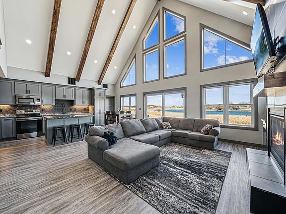 • Soaring 24’ vaulted ceilings with panoramic lakeshore views