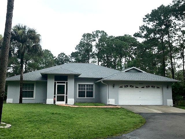 BEAUTIFUL MOVE-IN READY home sits on 2.5 acres and features a split floor plan, including, 3 bedrooms, 2 baths and 2 car garage. This home is located in a desirable area close to all amenities and features a beautifully renovated kitchen (2017) with quartz counter tops, farmhouse sink and new Samsung/Bosch stainless steel appliances (2017), wood plank title floors in kitchen and bathrooms and laminate flooring throughout the bedrooms and main living areas, completely updated bathroom with tiled shower. The exterior of the home features an over-sized screened in lanai, custom made fire pit, security lights and shed for storage. The home comes equipped with a new roof (2017), new A/C unit (2015), newer water heater tank (2014), new paint job (2017) and newer water softener system (2014). The home has also had a whole house plumbing re-pipe in 2014. This home is close to all the amenities Naples has to offer with no restrictions or fees! Come see this ready to live in home now. NOTE: This property does not require flood insurance coverage per LOMA.