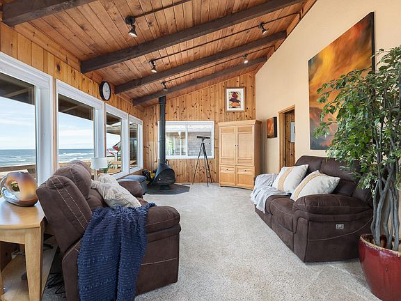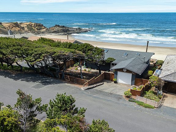 Discover coastal living at its finest in this stunning single-level oceanfront sanctuary, where panoramic vistas of both rugged shoreline and endless sandy beaches await. Nestled on a tranquil dead-end street, this home offers unparalleled privacy and easy access to the beach, just steps away from your front door. Upon entry, you are greeted by a charming Dutch door, perfect for welcoming in the coastal breeze and sunlight that fills the home. Inside, vaulted ceilings and skylights bathe the interior in natural light, creating an airy ambiance that perfectly complements the breathtaking ocean views visible through a wall of windows. Imagine cozy evenings in the great room, warmed by the crackling fireplace as you witness dramatic winter storms roll in, or marvel at majestic whales breaching just offshore during their seasonal migrations. Entertain effortlessly in the spacious great room, where gatherings are enhanced by the backdrop of unforgettable sunsets painting the sky. Step outside onto the expansive oceanfront deck, where every moment becomes a scenic masterpiece, from watching playful seals frolic in the surf to observing fishing charters cruise by on the horizon. For moments of relaxation, the courtyard, beautifully landscaped and fully fenced for privacy, provides a tranquil retreat. Here, the sounds of the waves provide a soothing soundtrack to your days spent basking in the coastal charm of this idyllic setting. This home is not just a residence but a lifestyle, offering an inground sprinkler system for easy maintenance of the low-maintenance yard. While the HOA prohibits nightly rentals, long-term rentals are permitted, ensuring flexibility for both full-time residents and those seeking a part-time retreat by the sea. From Fishing Rock to the majestic Cascade Head, every corner of this property offers unparalleled views that capture the essence of Oregon's breathtaking coastline. Whether you're an avid beachcomber, nature enthusiast, or simply seeking a place to unwind and recharge, this oceanfront gem promises a life lived beautifully by the sea. Don't miss your chance to experience coastal living at its finestschedule your private tour today and envision yourself calling this remarkable property home.