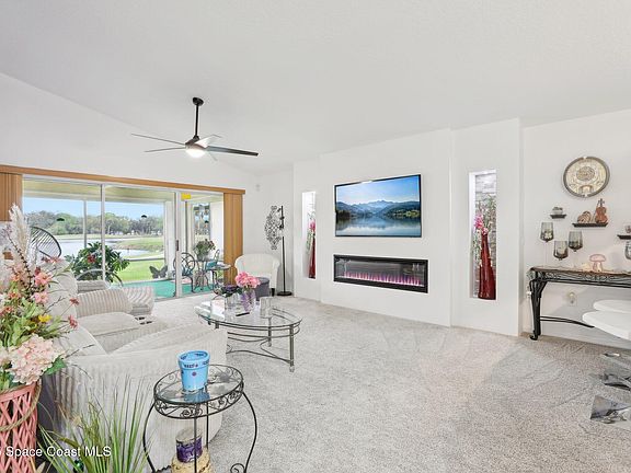 Charming 3-Bedroom Home with Stunning Golf & Rocket Views in La Cita! Discover this beautifully maintained 3-bedroom, 2-bath home in the highly desirable La Cita community of Titusville. Enjoy breathtaking lake and golf course views—plus direct rocket launch views from your own backyard! Step inside to a spacious great room with soaring vaulted ceilings and sliding doors that open to a screened porch, offering the perfect spot to take in the scenery. The kitchen boasts granite countertops, upgraded cabinets, a large breakfast area, and a breakfast bar, making it both stylish and functional. The primary suite features a generous walk-in closet and an en-suite bath with double sinks and a walk-in shower. Thoughtfully upgraded over the past two years, this home includes: New AC (August 2022), Fresh exterior paint, New appliances, New carpet, Brand-new insulated garage door (2024) with MyQ app compatibility, New electric decorative fireplace, upgraded laundry room with washer & dryer included, New water softener & all new toilets, New ceiling fans throughout, Built-in Murphy bed with a never-used mattress in one bedroom. Perfectly located near top attractions: 42 minutes to Orlando International Airport (MCO), 30 minutes to Port Canaveral, 20 minutes to Kennedy Space Center, 32 minutes to Cape Canaveral beaches. Move-in ready and offering a lifestyle of comfort, convenience, and incredible viewsdon't miss your chance to make this home yours!