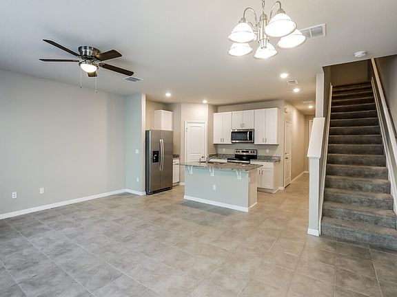 Check out this three-bedroom, two-and-a-half-bathroom rental home in Palm Springs, Florida. In addition to providing 1,485 square feet of generous space, this home has a chic living room flaunting an overhead fan and an open floor layout flowing directly into the dining room and kitchen. Home cooking will love the island sitting at the center of the kitchen, as well as the walk-in pantry, granite countertops, and stainless steel appliances. The main bedroom is upstairs, donning two windows with wood-look blinds and a walk-in wardrobe. Its en suite bathroom comes with dual vanity sinks and a walk-in shower. A one-car garage and a patio are outdoors. Contact us as soon as possible to schedule a tour of this place!