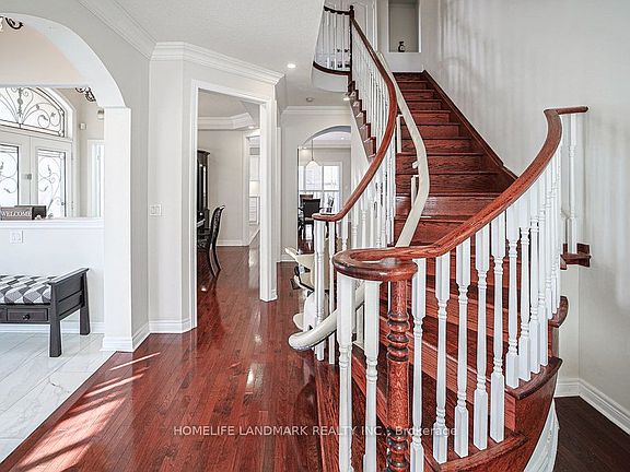 Welcome to this beautifully maintained corner-lot home situated in Mississauga's desirable Churchill Meadows community. With an expansive, nearly 64-ft wide lot and an open-concept layout ideal for family living, this home offers exceptional comfort and value just minutes from all major amenities. Step inside to an inviting main floor featuring pot lights throughout, a bright, upgraded kitchen equipped with JennAir dual ovens, sleek cabinetry, California shutters and an overall spacious, functional kitchen perfect for everyday meals or entertaining. The main level also includes a generous living and dining area with excellent flow for family gatherings, along with a separate office ideal for study or work-from-home arrangements. Upstairs, each bedroom enjoys direct access to a bathroom, including two private ensuites and a Jack-and-Jill (semi-ensuite), providing outstanding privacy and convenience for growing families or multi-generational living. The thoughtful floorplan offers abundant closet space and well-designed storage throughout. Additional highlights include an epoxy-finished garage floor, updated roofing and attic insulation, and includes an additional fridge in the laundry room. The home is equipped with a stair lift, offering added accessibility and comfort for seniors, individuals with mobility needs, or those seeking aging-in-place features. Outside, enjoy a beautifully finished stamped concrete patio and walkways, creating an inviting setting for outdoor dining, children's play, and summer entertaining. Water your grass worry free with the in-ground sprinkler system. The large corner lot provides significantly more usable outdoor space than typical homes in the area. Perfectly located near top-rated schools, parks, community centres, Erin Mills Town Centre, Credit Valley Hospital, places of worship, GO Transit, and major highways, this home offers unbeatable convenience and walkability. Beautifully cared for and great value offered!
