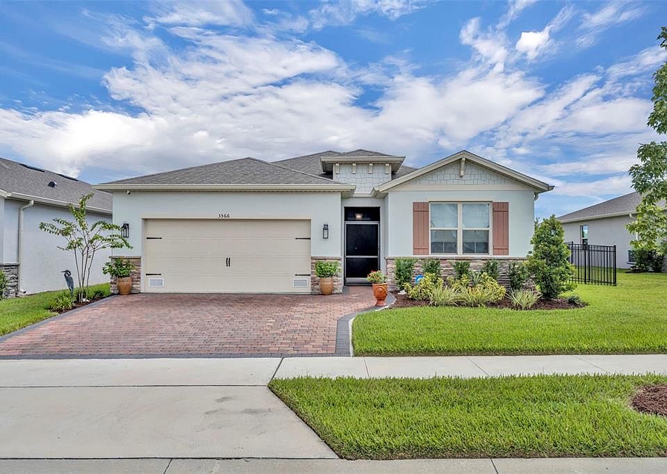 Located in the gated, golf cart friendly 55+ community of The Palms at Serenoa in Clermont, Florida! This exceptional 4-bedroom, 2-bathroom home was built in 2023 sits on a standout waterfront premier lot overlooking a peaceful pond and fountain. Designed for elegance and ease with an open floor plan for comfort and privacy. The home has been thoughtfully updated with the following features: -15' × 40' screened, extended paver lanai for outdoor living & entertaining while watching Disney fireworks- A grand kitchen island with quartz countertops, custom pantry shelving & thoughtful storage - A spacious laundry area with collapsible laundry drying system - Black aluminum fencing to secure the backyard without blocking your view - Security cameras for your safety in mind - Garage with epoxy floor, attic ventilation via solar, retractable attic stairs, and plywood sheeting for extra storage - Generator hook-up directly to the main panel - Whole-house surge protection - Extended paver driveway - So many additional upgrades by the seller (ask for the full list when you tour) The community has much to provide to entertain the social and active residents: Resort-style heated pool (including zero-entry & lap features) community patio with gas firepit area. Walking trails and 16+ acres of natural/open space. Courts & lawn areas for pickleball, bocce ball, and other active pursuits. Two dog parks & dog-friendly walking paths. Clubhouse with fitness center and activity rooms Pickleball and bocce ball courts Walking trails, open green space, and dog parks The community is close to shopping, dining, Lake Louisa State Park, and Downtown Clermont, with convenient access to Orlando attractions. The home is 17 miles from Disney World, 18 miles from Universal, 15 miles from Epcot and 28 mins from MCO Airport!