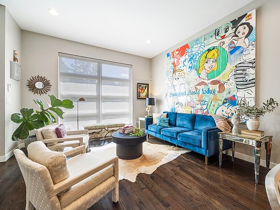 Clean modern finishesHigh ceilingsHuge islandFamily room in backWell-appointed kitchenQuartz countertopsRear deck