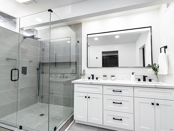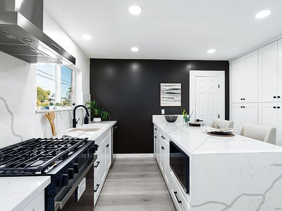 Step into your dream home, located in the highly coveted Clairemont community of San Diego! This stunningly remodeled residence effortlessly combines modern style, comfort, and an unbeatable location. Situated on a serene street, the home boasts a fresh and contemporary design, featuring a striking modern front door, luxury vinyl plank (LVP) flooring, and recessed lighting throughout. The open-concept gourmet kitchen is a showstopper, complete with a sleek waterfall-edge peninsula, stainless steel appliances, and brand-new cabinetry. The spacious living room, illuminated by natural light, opens to a fantastic enclosed patio. The primary suite is a tranquil retreat, offering a walk-in closet with built-in shelving and direct access to the backyard through a sliding door. The en-suite bathroom exudes sophistication, featuring dual vanities and a large walk-in shower. The backyard is a private oasis with ample space to relax while enjoying canyon views. Additional upgrades include a newer roof, furnace, AC, landscaping, and fresh interior and exterior paint. The seller has never occupied the property and has very limited knowledge of property condition or history. All measurements are approximate. Buyer's and Buyer's Broker/Agent should verify measurements and complete thorough inspections and investigations prior to Close of Escrow to satisfy themselves with the current condition of the property. Buyer(s) to verify and approve all data, reports, records, inspections, permits, MLS, HOA, if applicable and all information pertaining to the property prior to removal of contingencies. All contracts/offers are subject to seller approval and any offers or counteroffers by seller are not binding unless the entire agreement is ratified by all parties.