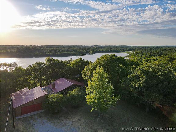 3 bd, 2 ba rustic cabin with Arbuckle Lake views! This home has an open floor plan with large windows overlooking a private backyard, which shares a boundary with the National Park Service. There are 2 bedrooms and 2 baths on the first level. This unique home has real brick flooring and tongue and groove pine walls. The upstairs loft style bedroom has space for 3 additional beds! There is an attached garage and multipurpose space.