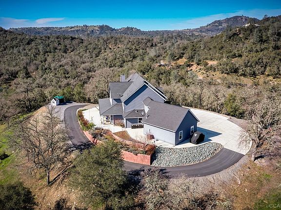 The views will take your breath away! This turnkey executive home offers all the comforts with all the peace of county living! Perfect Location ,25 min. from SUTTER CREEK, 30 min from MURPHYS. The recently paved private driveway is a beautiful transition to the top of the hill to the approx. 3500 sft. 4-bedroom, 3.5 bath home. The open floor plan with vaulted ceilings feels cozy with the large rock fireplace. Large windows offer multiple opportunities to gaze out over the local mountains and offers amazing views from almost every point of the house. The addition of expanded parking and custom landscaping close to the home makes maintenance easy. The Master Bedroom is located downstairs for ease of living. A large kitchen with island and eat in area have been updated with new stainless appliances. Travertine floors run throughout the downstairs living areas. Access to the back covered patio from the kitchen makes outside entertaining fun and easy. There is no lack of storage with the walk-in pantry and office / butler area near the kitchen. The oversize 2 car garage with cabinets for storage can be accessed through the mud room . A large area is also available for RV or Boat Parking. The maintained gravel/graded road for walking and accessing the Calaveras River is a wonderful way to reconnect with the outside world after work or on weekends. The Calaveras / Amador area offers local wineries, winter sports and lakes for fishing and boating !