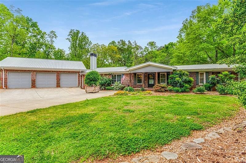 Discover the perfect blend of comfort and functionality in this open-concept, ranch-style home! When you enter, you will feel the expansiveness of the living/dining/ kitchen area. The living rm has a charming, log-burning fireplace. Right off the living room is a bright indoor/outdoor space that can be used year round with views into the backyard and an expansive deck. Both bedrooms down the hall have walk in closets. There is a flex room near the garage that can be converted into an extra bedroom or office. It is currently being used as a laundry space. This property is Ideal for car enthusiasts, hobbyists, or those needing extra storage, it features an extra-large attached 3-car garage with ample room for vehicle maintenance and projects. Plus, there's an additional 30x35 detached garage in the back, complete with its own bathroom (plumbing), electric, and plenty of storage-perfect for a workshop, extra vehicle space, or turn it into a studio. Love the outdoors? There's plenty of space to park your RV or boat, ensuring all your toys have a place. The low-maintenance yard allows for easy upkeep, so you can spend more time enjoying your home. Just minutes away from downtown Holly Springs, downtown Canton and near shopping and area parks!