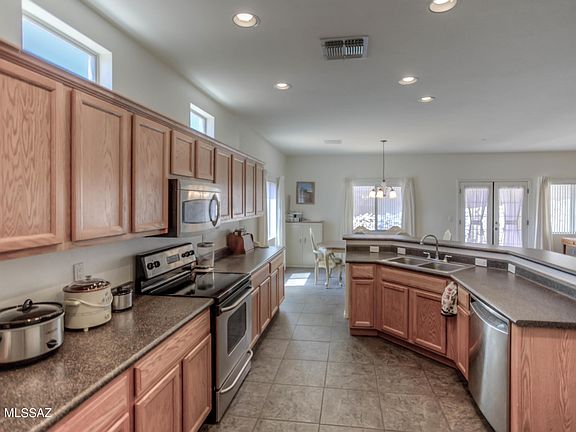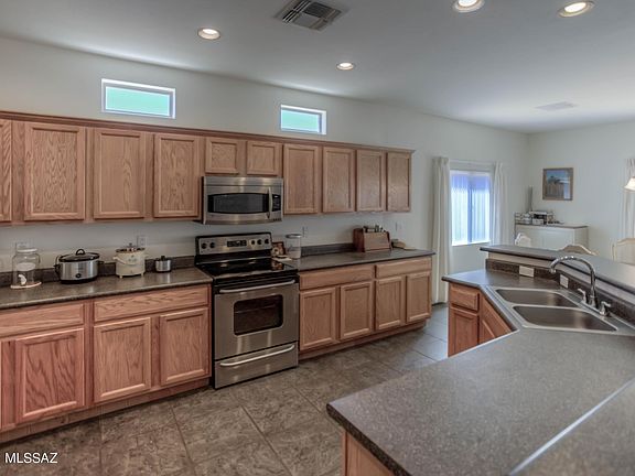 Immaculate and meticulously maintained by original owner, this spacious 4bed/2ba home sits on an oversized quarter-acre lot with spectacular mountain views! Extended 2.5-car garage w/ hanging storage shelves, bonus room off the great room, island w/ breakfast bar seating, formal dining area and plenty of closet storage. Enormous backyard w/ covered patio - very private and perfect for a pool! Huge walk-in closets in 3 of the bedrooms with additional custom shelving, gas fireplace, gas or electric hookup in the laundry room, prewired surround sound in great room and whole house network ethernet. Transferrable HVAC Service and Termite Prevention Plans plus Upgraded Home Warranty. Black Horse Ranch is a quiet, friendly neighborhood with incredible views and Oro Valley schools. WELCOME HOME!