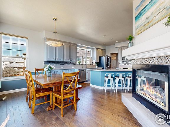 Nestled within Highlands Ranch, this meticulously maintained home offers convenience and comfort at its finest. Upon entering, you're greeted by an inviting open floor plan flooded with natural light and adorned with solid 3/4" ash hardwood flooring. The main level features a versatile home office/flex space with custom barn-style doors, a cozy dining area, and captivating mountain views from the two-story great room. The kitchen boasts modern quartz and slate accents, complemented by a convenient breakfast nook and a spacious synthetic deck with retractable awning, speakers and TV for outdoor enjoyment. A main floor master retreat with an en-suite bath offers a peaceful oasis away from the hustle and bustle, providing the perfect sanctuary for relaxation and rejuvenation after a long day. Upstairs, hypoallergenic 100% wool carpeting enhances the comfort of the living spaces, including a versatile loft ideal for play or relaxation. An en-suite bedroom is thoughtfully separated from the others for added privacy. The walkout basement presents endless possibilities, with a large finished bedroom and roughed-in plumbing for a future bathroom adjoining the bedroom. Large windows bathe the space in natural light, while access to the patio invites outdoor gatherings. The oversized three-car garage, pre-wired for an EV, ensures ample parking and storage. Just minutes away, discover a plethora of amenities, including top-rated schools, Cougar Run Park, Sand Creek Park, scenic trails, a variety of shopping options, and your choice of four Rec Centers offering pools, tennis courts, batting cages, gyms, and plenty of other activities. Embrace the abundant recreational opportunities at the HRCA Backcountry Wilderness Area, including archery, horseback riding, hiking, and biking. Lot's of updates. Reach out to access the full list.