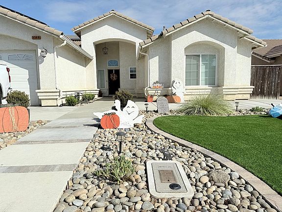 Welcome to your dream home in Madera! This immaculate three-bedroom, two-bath residence boasts a bright and open-concept layout, perfect for modern living. The interior features all-new vinyl flooring and elegant 6-inch baseboards throughout, enhancing the home's contemporary appeal.The spacious master bedroom includes luxurious walk-in custom closets, providing ample storage and organization. Enjoy the benefits of multiple upgrades, such as a water softener and an EV charging outlet, making this home eco-friendly and convenient.Step outside to discover a beautifully landscaped front yard with new turf and a drip irrigation system, ensuring low-maintenance greenery all year round. The newly poured concrete adds to the front yard's charm.The backyard features a sprinkler system, making it perfect for outdoor entertaining or relaxation. While a tough shed, less than a year old, provides extra storage.The property also features an oversized three car garage andis energy-efficient with the solar panels, allowing for lower utility bills.This well-maintained property combines style, comfort, and sustainability, making it the perfect place to call home. Don't miss the chance to make it yours!