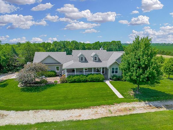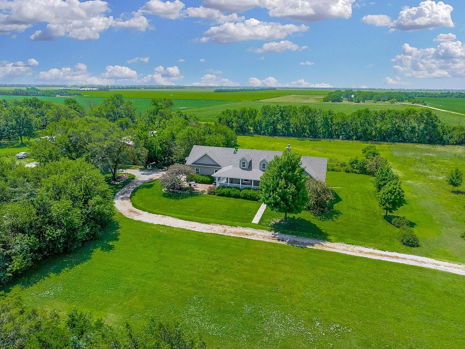 Nestled on approximately four secluded acres, this warm and inviting country estate offers the ultimate in peaceful living. So private it's easy to miss, nearly the entire property is beautifully bordered by mature trees, creating a serene and sheltered retreat. Step onto the classic wraparound front porch and into a spacious foyer that opens to soaring ceilings and a stunning floor-to-ceiling stone fireplace—an impressive centerpiece to your cozy living space. The open-concept design flows into a large dining area and chef’s kitchen, complete with solid wood cabinetry, stainless steel appliances, an oversized island, and ample storage. The main floor features a generous guest bedroom and full bath, along with a comfortable primary suite that includes a walk-in closet and private en suite bath. A large laundry room with drop zone and utility sink adds everyday convenience. Downstairs, you'll find a large landing that leads to a spacious bonus room—perfect for a home theater, office, or hobby room—plus another large bedroom, full bath, and expansive family room. Two oversized storage rooms provide all the space you need. Outside, enjoy a side-load two-car garage, a spacious patio ideal for grilling and stargazing, and a vibrant backyard garden with perennials and a garden shed. This is true country living at its finest—private, peaceful, and full of charm. Don't miss your chance to own this hidden gem just minutes from Goessel.