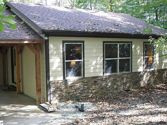 Seller is MOTIVATED!! Selling As Is! Looking for a newer, beautiful cabin nestled in the woods of nearly 11 acres? Peaceful, secluded and quiet await you on your porch overlooking a stream. Follow a winding driveway to the home with an open floor plan, great kitchen giving you beautiful cabinets and newer appliances, granite counters. washer and dryer remain and most of the furnishings may be purchased separately. Great room has vaulted ceiling and beautiful wooden log wall, master bath and walk in closet. Comfortable and coziness await you. Partially finished area in basement is a perfect workshop space or simply good, dry storage for you! This home has architectural roof, granite countertops, upgraded cabinets, huge open back porch, beautiful covered carport and is very private, but you are not far from grocery etc. If square footage is important the buyer or buyers agent should verify.