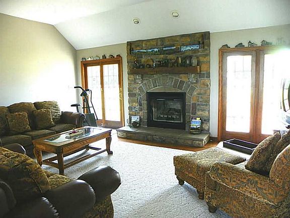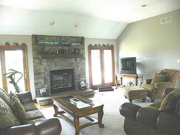 Awe inspiring farm House w 8 acres. Spectacular custom built ranch with palladium windows overlooking awe inspiring vistas. Gorgeous hardwood floors and trim. State of the art equipped kitchen with granite. Master Bedroom w en suite bath. Cement patio. Great room with stone fireplace.. Barn, bank building and large storage building with dock included. OGM Stays. Shallow gas well feeds furnace.