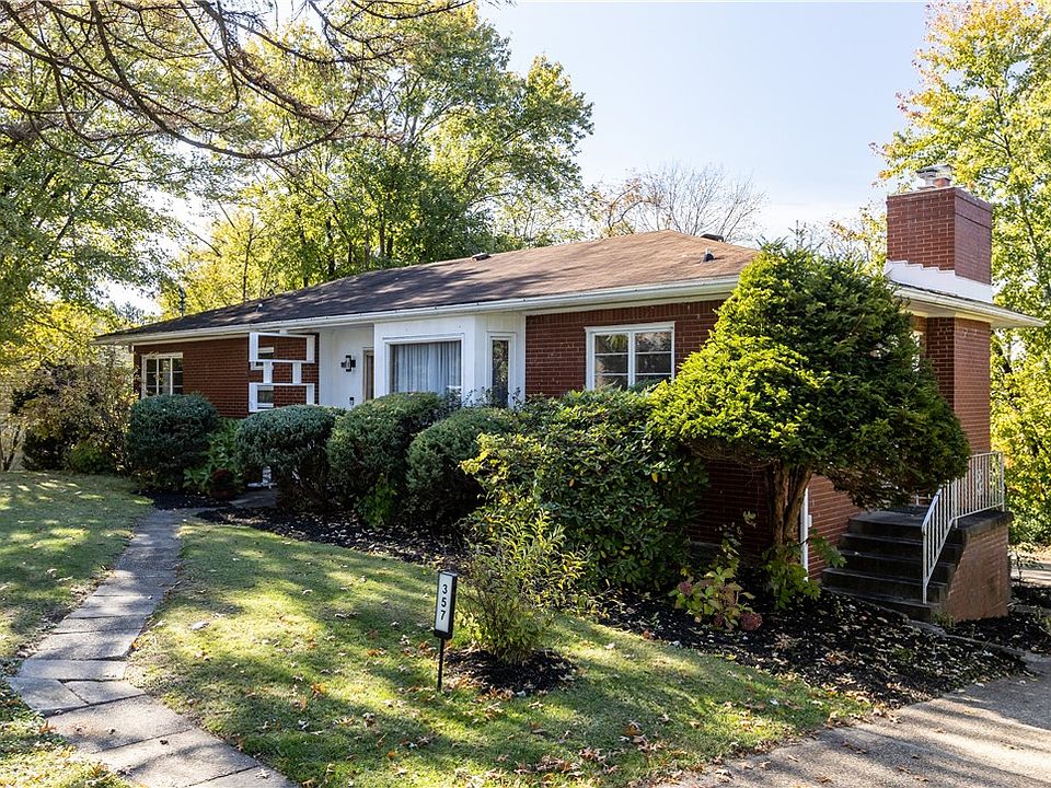 Step back in time with this classic 3 bedroom, 2 bath mid-century modern ranch home. Afternoon light floods through oversized bay windows giving the living room a warm, inviting feeling. Enjoy sitting by the wood burning fireplace on cold winter evenings with a warm beverage. The galley kitchen incorporates original cabinetry, and dining area. A vintage bathroom with original 1950's tile and fixtures screams retro! Step out of the lower level's finished rec room to the new outdoor patio to enjoy quiet evenings. A two-car integral garage gives protection to your vehicles while also providing ample storage space for all your belongings. The house sits on almost a third of an acre with a level back yard, abutting the 3rd hole of the Edgewood Country Club.