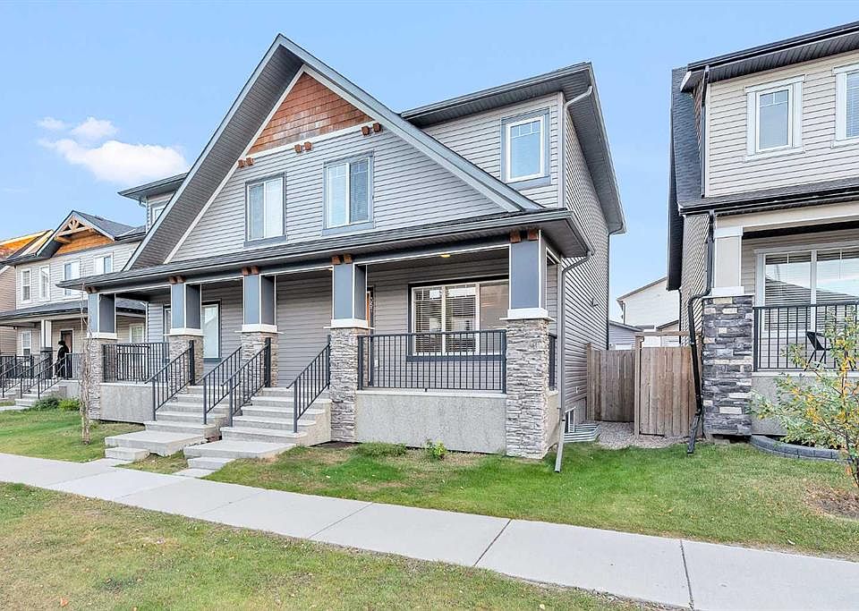 Your new comfortable modern home in the heart of Skyview Ranch welcomes you! Move-in ready and quick possession available. Perfect location with a 5-min walk to Prairie Sky School (K-9)! Easy access to major roads; only 5 minutes from Stoney Trail, Deerfoot Trail, and the Airport! And only a 15-minute drive downtown Calgary! This 2-storey semi-detached family home offers 3 spacious bedrooms, 2.5 bathrooms, over 1,400 square feet of living space, and a double detached garage with back lane access. This is THE perfect family home for you. Meticulously cared for by the original owner and in amazing condition (no pets and non-smoking), this home awaits its new owner. Before entering, the front porch greets you outside. New vinyl siding and roof, replaced in 2025, giving this exterior a fresh new look. Inside, the open design with 9-foot ceilings and rich hardwood flows seamlessly throughout the main level. Vibrant front living room - perfect for entertaining or family relaxation, and gorgeous kitchen finished with rich maple cabinets, upgraded S/S appliances, granite countertops, an island for convenient casual dining and adjoining dining area leading to the mudroom and south-facing yard and deck. There is a custom built-in desk so you don't have to sacrifice a bedroom for that functional home office space with this home's layout. Upstairs showcases a master suite with a walk-in closet and a 4-piece ensuite. You'll find two other spacious bedrooms and a 4-piece ensuite, plus upstairs laundry with upgraded washer and dryer for added convenience. The large, unfinished basement with 2 big windows offers endless possibilities for future development. Fully fenced south-facing backyard is a private, open area good for small gatherings and barbecues with family and friends. This outstanding home offers a ton of upgrades and an unsurpassed location. A phenomenal, family-friendly community surrounded by big prairie sky pierced with city skyline and every amenity: shopping, schools, parks and a multitude of green spaces and pathways. A must see!