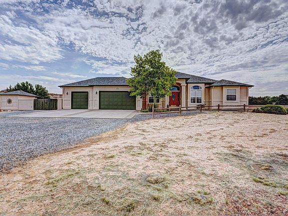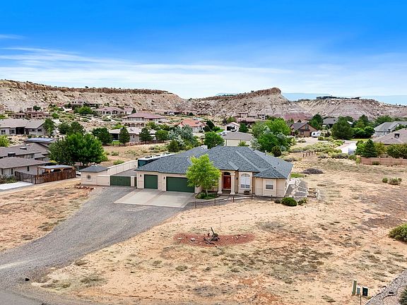 Sitting at the base of the Colorado National Monument, this beautiful and well cared for home is waiting for you! It offers 3 bedrooms, 2 bathrooms, a 3 car garage with a work bench, a storage shed, PLUS a large 28'x30' shop. Not to mention the views! This home has ample living space inside and out! The shop offers heating and cooling, 220 power, an epoxy coated floor, workspace and a large air compressor. Outside the shop is RV parking along with electrical hookup and a dump station. The roof was replaced November 2023 and the exterior of the home was repainted in 2019. Inside, the home is bright and clean. The pantry in the kitchen is nice and large and there is plenty of storage space throughout the home. This home is located close to walking and hiking trails, sits on a quiet cul-de-sac and is minutes from the Lunch Loops. Don't miss out on this beautiful home in a prime location.