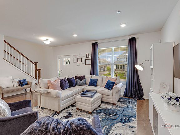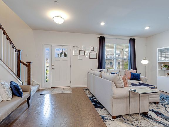 Welcome to the Villas at Link Crossing in Buffalo Grove and the acclaimed Adlai Stevenson high school district. This fully open concept main floor living space is a 3 yr newer townhome. The Emmerich is one of the larger models. 3 beds & 2.5 baths. Full open concept living on the main floor is luxurious with engineered hardwood planks throughout the main level. 9Ft ceilings add a spacious airy feel to the living space. Full size windows allow the natural light to pour in throughout the entire home. The living room is large & open to the gourmet kitchen & dining area. The beautiful kitchen with white cabinets has a huge island, plenty of counter space, seating, and pendant lighting. Quartz counters and SS appliances make this kitchen ideal for gourmet cooking. Panty closet gives added storage. A large dining area allows plenty of room for formal dining. The main floor office with French doors adds privacy in your work from home area. Plus a powder room just off the kitchen area. The oak railings lead to the upper level that boosts a good sized primary with luxury bath & separate shower ensuite. Large walk in closet with built-ins makes it easy to organize your clothes, shoes & accessories. A 2nd bedroom down the hall. The large loft space is ideal for an added recreation/play area. The large 3rd bedroom with walk in closet is just as large as the primary. Easy access to the full bath with vanity space. A flex storage room is being used as an overflow closet for shoes and accessories. The laundry room has plenty of space to move around in. An additional linen closet adds more storage. The unfinished basement is large enough to add a bedroom and a recreation room. Basement is roughed in for a bath. Just imagine what can be done with an unfinished basement tailored to your needs! The enclosed deck has plenty of privacy. The two car garage includes storage shelving. Beautiful surrounding landscape throughout the common areas. Enjoy the walking paths, park and tennis court with plenty of benches for resting and taking in the view. Buffalo Grove offers an abundance of community events as well as shopping and entertainment. Easy access to I94 and surrounding main roads for your convenience. Come on home!