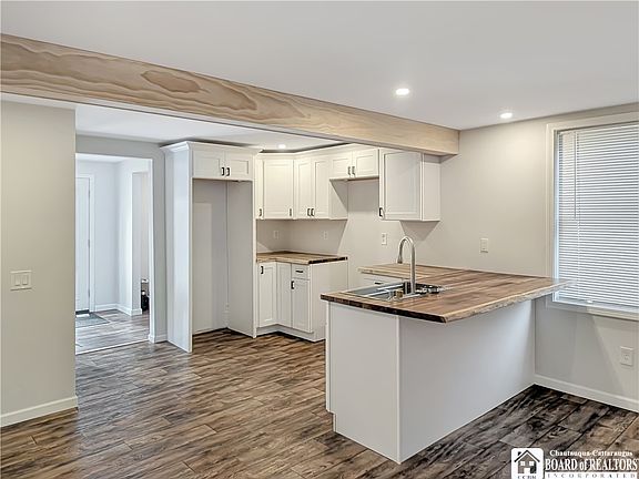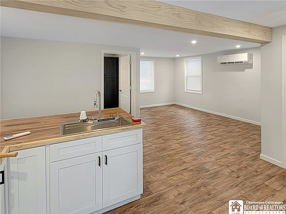 The heart of the home is a stunning, all-new kitchen that blends functionality with modern design. You’ll find warm butcher block countertops, sleek soft-close cabinetry, and a cheerful breakfast bar that creates the perfect spot for morning coffee or casual meals. The open flow between the kitchen and living areas provides a comfortable layout ideal for both relaxing and entertaining.