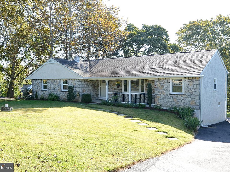 This exquisite hillside ranch home is nestled on a spacious full-acre lot in the desirable Belmont Terrace neighborhood of King of Prussia. It's a commuter's dream, and the luxury of having an acre of land in this edge city is truly unparalleled. Notably, as you can see in photo number 4, this property is special in that it boasts wider side yards on both borders and its setback from the road is further than that of the neighboring homes. Step inside and revel in the seamless main floor living experience, accentuated by an abundance of natural light that graces each room through large new windows. Newly installed premium laminate plank flooring connects every space, creating a sense of continuity that beautifully combines elegance with easy maintenance. A versatile bonus room with an architectural built-in pillar room divider, adjacent to the large main living area, offers endless possibilities whether it be for a child's playroom, pool table, or a crafting haven. The office located off of the bonus room, separated by a stunning French door, provides the privacy you need to work from home effectively yet allowing close proximity to family. This space could also serve as a 4th bedroom. The kitchen is a vision of cleanliness and freshness, with pristine white cabinetry, complemented by matte black hardware, and adorned with granite counter tops that deliver both style and functionality. Enjoy casual dining in the kitchen's eating area or pull up a stool to the breakfast bar. For more formal occasions, the dining room provides an ideal space for hosting family-style meals. The main level also comprises three bedrooms, two full bathrooms, including an en suite primary bathroom featuring a double vanity, and an abundance of closet space. Notably, the main hallway offers not one, not two, but three closets to cater to all your storage needs. Venturing downstairs via a beautiful modern finished oak staircase to the separate zoned heated lower level presents a world of possibilities. In addition to a generously sized laundry/mudroom area with direct access to the backyard, driveway and parking area, this level boasts a substantial workspace / shop and a fully finished, well-lit huge bonus room awaiting your creative touch—the options here are limitless. The "daylight" home elevation brings lots of natural light to this lower level. No need to worry about hard water here! Take note of the water softener system the current owner installed. Outside, the massive freshly stained back deck is the perfect spot to unwind while listening to the soothing sounds of nature and keeping an eye out for wildlife in the expansive backyard. You'll easily forget that you're in the heart of a bustling concentration of business, shopping, and entertainment edge city. If you're into working on cars or other vehicles, the bright over sized tandem garage, with its fresh epoxy flooring and additional cement encased storm cellar(with MASONRY WALLS AND CEILING) at the back, offers the ideal space to keep them protected from the elements. Additionally, leaf guards have been installed on the rear and side gutters to prevent clogging from leaves and debris. This residence is move-in ready, eagerly awaiting your personal touch to make it your own. The location is truly exceptional, offering close proximity to major highways and easy access to all your shopping needs, just minutes away. Don't miss out—schedule your showing today and make sure to view the virtual tour.