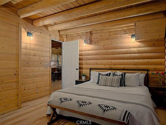 Warm inviting Log Cabin located in the sought after Palisades neighborhood built in 2008. This almost level lot is so great and is only one step up to the front door. There is a covered porch and french doors offering an inviting entrance into the home. Once inside you are greeted with tall vaulted ceilings and woodwork throughout. The living room, kitchen and dining room offer an open floor plan providing a great flow for entertainment space. There is a primary bedroom on the main floor with on-suite and a clawfoot bathtub, along with a half bath and laundry area, and access to the backyard. upstairs the vaulted ceilings continue to a loft space, 2 more bedrooms and a full bath. The tall ceilings and windows allow for plenty of natural light and make the home feel grand. Out back is a fully fenced yard, an attached smaller deck, a spot with laid pavers and a built in gas fire-pit, a concrete space great for games or even potentially a space to park a boat or RV and many more options. This home comes furnished minus sellers personals, and has been used as an STR. You are close to the lake and lake trials and the Palisades neighborhood is even known for it's "Trick or Treating" spot for Halloween. Don't pass up on this well maintained one of kind home located in Lake Rights.