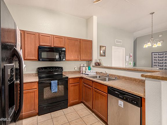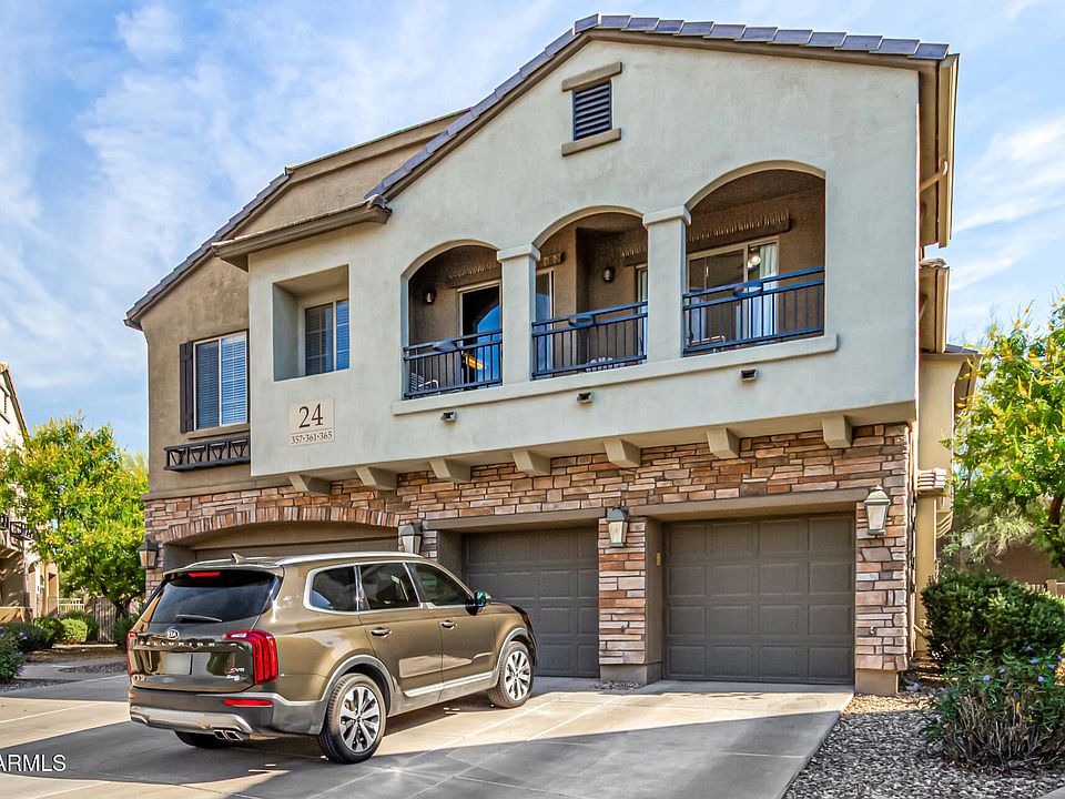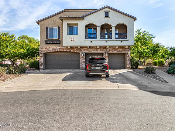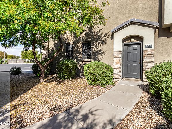 Beautifully maintained townhouse in a peaceful cul-de-sac with bright, open living spaces and tile flooring. Seller will have the tile floors professionally buffed and the entire home deep cleaned before closing for a true move-in-ready experience. Enjoy a private west-facing balcony for stunning sunsets, a kitchen with warm cabinetry and breakfast bar, and a main bedroom retreat with NEW carpet, balcony access, and private bath. Split layout for privacy, walk-in closets, all appliances included, plus extra garage storage. Community offers a pool, greenbelt, and playground. Minutes to dining, shopping, Westgate, Luke AFB, and 7 minutes to Goodyear Ballpark. This is YOUR next home!