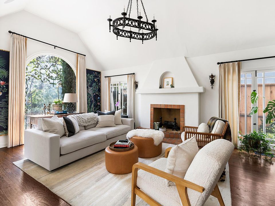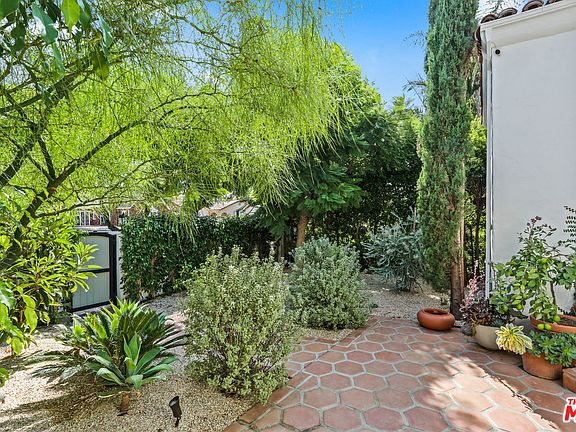 This thoroughly modernized 1920s Spanish revival is located in prime Beverly Grove. Gated and hedged for privacy, this retreat like home is exactly what you've been searching for. Offering three bedrooms and three baths, the sensible floor plan features bright interiors and wood accents. The formal living room boasts high vaulted ceilings, fireplace and large picture window, which allows an abundance of light to pour through. A chic curation of light fixtures, tile and hardware lend a clean edge to the home's historic details. The open dining room leads to the light-filled kitchen with great storage, built-in pantry, Viking stainless steel appliances and charming breakfast nook. Oversized primary suite features ample closet space and remodeled spa-like bathroom, and french doors that lead to the spacious backyard. The backyard has a large grassy area with room for a pool, and a former garage - now a great office space or bonus storage. Above the former garage is a guest room with a large closet and bathroom perfect for house guests. Smart home features include speakers, alarm system, cameras and lights. Don't miss this amazing opportunity in one of the most desirable areas of Los Angeles.