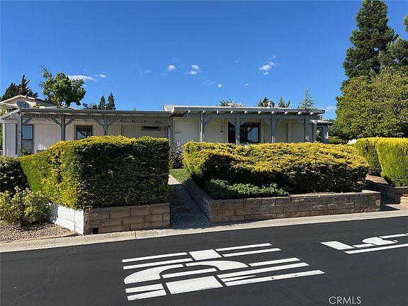 Located on Nightingale Ave in the 55+ community of Quail Run in Paso Robles, which offers amenities like a pool, tennis courts, clubhouse, and community activities. The neighborhood is known for its cleanliness and quiet atmosphere. The mobile home features two spacious bedrooms and two full bathrooms. The kitchen is a large galley style with updated cabinetry, ample storage, and spacious Corian countertops, new refrigerator. The living room and bedrooms have new carpet and entire home with fresh interior paint. Built in China cabinet in the dining room with lighting. There's a spacious indoor laundry room with storage and counter space, featuring new linoleum and washer and dryer included. The property includes a 2-car garage and outdoor parking space for up to 6 vehicles, making it convenient for residents and guests. The corner lot offers a sizable backyard with several fruit trees (plum and sweet orange), gardening beds, complemented by a large, covered patio ideal for outdoor relaxation and entertainment. An outdoor shed adds convenience for storage needs.