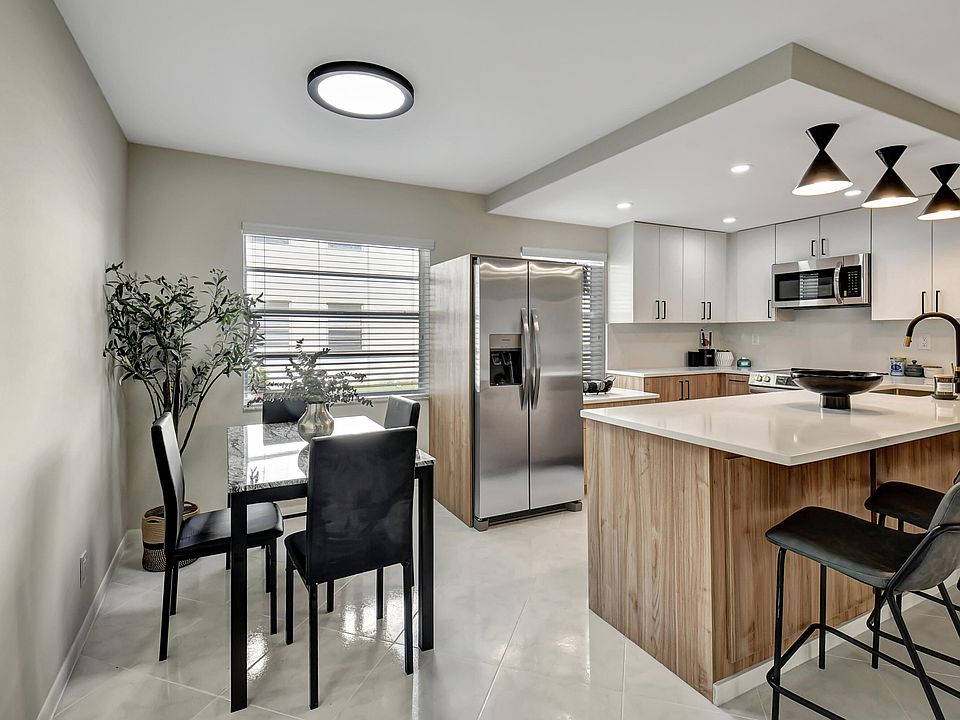 Stunning, gut renovated 1st floor corner unit with 2 bedrooms and 2 bathrooms, an enclosed balcony space and separate laundry room in Kings Point. Open floorplan with Stunning open kitchen with huge kitchen Island, stainless steel appliances, and quartz countertops. Modern primary and guest bathroom equipped with beautiful finishes, floating vanity, LED lighted mirrors, andframeless showers. Kings Point is an amazing 55+ community that offers an incredible lifestyle. Enjoy eating at the cafe, clubhouse, playing a round of golf, swimming pool and spa, fitness center, tennis, Pickleball, shuffleboard, transportation bus, events, shows, secure gated community. Dont miss this opportunity to buy this newly renovated unit at an incredible value. Must see!