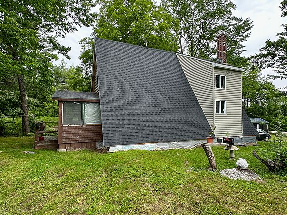 The main house is a cozy A-Frame style cabin, offering a unique architectural design that adds character to the home. With just under 800 square feet of living space, the house features two bedrooms, providing ample room for a small family or guests. The interior is comfortably heated with a heat pump and wood stove, ensuring warmth during colder seasons. The roof was recently redone in 2016, adding to the overall appeal and functionality of the property. A new septic system was also installed in the same year.