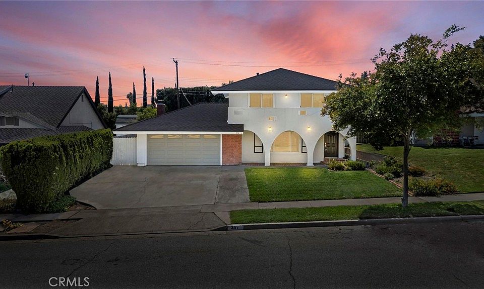 BEAUTIFUL HOME LOCATED IN THE HEART OF BREA!!! This home features a bright and open floor plan with 5 bedrooms, 2 bathrooms with 1,725 square feet of spacious living space. You are welcomed at the entry into the spacious living room that features a large window for plenty of natural lighting. The beautifully designed kitchen features plenty of cabinetry for storage, beautiful granite countertops, stainless steel appliances, gas cooktop, double oven, recessed lighting, walk-in pantry, and is open to the family room which makes it great for entertaining. The large family room has a beautiful fireplace and large picture window with a beautiful view of the backyard. DOWNSTAIRS MAIN BEDROOM with a connecting full bath, walk-in closet and has direct access to the large patio. Upstairs features 4 generously sized bedrooms with plenty of closet space. Upstairs also includes a beautiful full-sized bathroom and an oversized balcony. This backyard is ready for your next BBQ! This private backyard features a large yard with mature landscaping and a LARGE covered patio area. Additional features of the home include a 2-car garage, 2-year-old roof, newer flooring throughout, newer exterior and interior paint, and double pane windows. Located just steps away from the Brea Trail which perfect for your daily walk or bike ride. Close to Brea Mall, Downtown Brea, restaurants, shopping, and entertainment. Located in the Award-Winning Brea Olinda School District with NO HOA. This home is the one you won't want to miss!