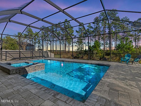 Live the Palencia lifestyle in this lovely marsh view, pool home. Huge open floor plan with 5/br, 4/br, dining room, office and a flex room. Cabana bath opens to a large screened in pool area with stunning views of the marsh. Storage space galore with generous bedroom closets, a walk in pantry and a 5x8 storage closet adjacent from the laundry room. Kitchen has stainless steel appliances and granite countertops. Tile and wood floors throughout. Seller added electric and gas heater for pool and spa. Also comes with a whole house Generac generator, solar powered electric, two extended backup power batteries, water softener and artisian spring water well. Never worry about a power outage at this home. Resort quality amenities and St. Johns County schools. Don't miss this great opportunity to live the resort lifestyle.
