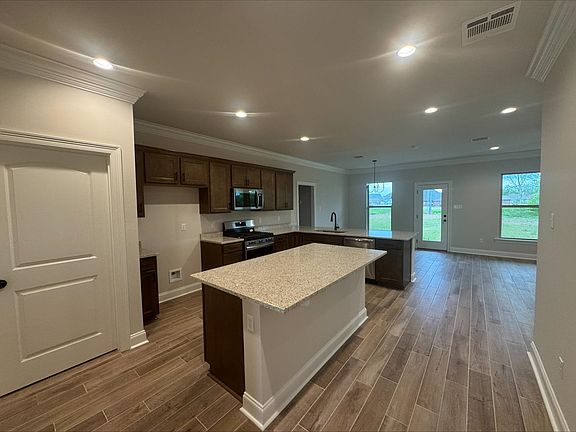 The LASALLE V B in Evangeline Oaks community offers a 3 bedroom, 2 full bathroom, open and split design with a computer desk/niche. The community is quiet with no through traffic and just minutes away from shopping and other amenities. Upgrades for this home include luxury wood-look ceramic tile flooring, a gas appliance package, undermount cabinet lighting, and more! Features: double vanity, garden tub, separate shower, linen closet, and walk-in closet in the primary suite, a kitchen island, covered rear patio, recessed canned lighting, undermount sinks, ceiling fans in the living room and primary bedroom are standard, custom framed mirrors in all bathrooms, smart connect wi-fi thermostat, smoke and carbon monoxide detectors, post tension slab, automatic garage door with 2 remotes, landscaping, architectural 30-yearshingles, flood lights, and more! Energy Efficient Features: a tankless gas water heater, a kitchen appliance package, low E tilt-in windows, and more!