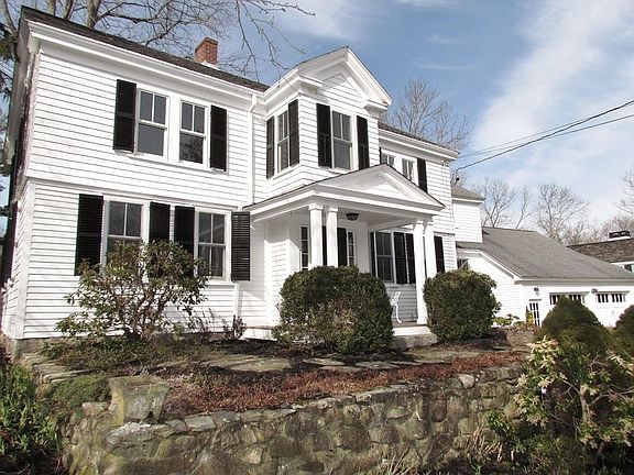 Welcome to the Jacob Lincoln House, circa 1792. Set back 100 ft. from the road with terraced lawn, flowering fruit trees, shrubs and stone walls, this Charming Greek Revival Cape has been lovingly renovated throughout. 4,226 sq. ft. of living space offers 5 brs., 4 full baths, custom kitchen with hardwood floors and 2 stainless gas stoves. Dining area with sliders opens to an outside patio. Front- to- back living room with period fireplace and vaulted ceiling is perfect place for entertaining. Second floor Master Suite boasts a walk-in closet with built-ins, Sumptuous Master Bath with Jacuzzi tub and double vanity. 2 large bedrooms and an office with walls of windows overlooking the backyard, koi pond and gardens. First floor bedroom/bath/den ideal for au pair suite or inlaw set-up!! Attached two car garage with bonus room above . There are three out buildings on this 1.9 acre property..original barn with 3 stalls, a small wood storage room and an updated Artist's Studio.