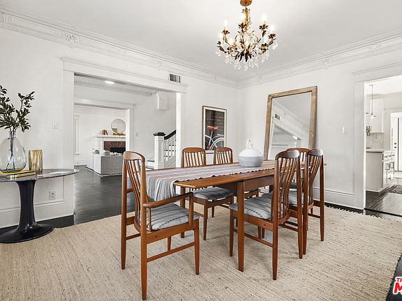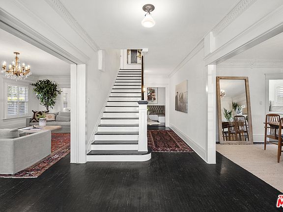 Stately Dutch Colonial Revival on a private corner lot in desirable Windsor Square within the 3rd Street School District. Character, natural light and space abound in this 2 story home with 4 bedrooms/ 3.5 baths + Detached Guest Studio just a short walk to Larchmont Village. (main house is 3055 sq.ft and guest studio adds an additional 520). Elegant center hall plan features grand scale living spaces with exquisite original crown moldings and character details. Fully renovated and move-in ready. Large living room features a wood burning fireplace, soaring ceilings with deep crown moldings. Impressive Dining Room with space for 10-12 easily. Updated kitchen with center island, professional series stainless appliances, marble countertops and a cozy eating nook with built-in seating. Expansive Master suite with sitting area, spa bath, and his and hers walk-in closets with built-ins. Secondary bedrooms are large and bright and share a lovely hall bath with freestanding double vanity, claw foot tub and separate shower. Back yard with inviting covered patio is perfect for lounging and outdoor living, plus outdoor dining area and flat grassy lawn. The detached guest suite/studio comes complete with 3/4 bath and room for a kitchenette. Ideal as an in-law suite, home office, gym or creative studio space. 2 car garage with side entry and side by side parking for 2 additional cars in driveway.