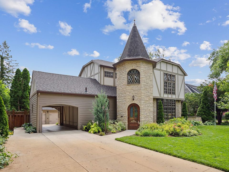 Meticulously Maintained and Character Galore! Fall in love with the stunning design and beautiful updates of this castle-like home on Sheridan Road! Step inside to a well-designed interior, with key updates and amenities that you’ll enjoy at every turn! An amazing entryway provides the perfect transition indoors, and the space opens up to the main gathering areas. A mid-century wooden spiral staircase is a beautiful attraction, adding a unique touch to this great space. The living room and dining room are open and elegant, featuring quality built-ins and large windows flooding the space with natural light as well as warm flooring and a white stone fireplace that add ambience to the space. Connected to the dining room is the gourmet kitchen. This truly is your dream kitchen! Modern stainless appliances, pearl white cabinetry, matching subway tile backsplash, expansive quartz counters, and incredible tile flooring pair extremely well and make this space hard to beat! Further in, a backyard entry nook provides an excellent addition. This main floor finishes with two great sized bedrooms, both with new hardwood flooring, and an updated full bathroom with dual sinks to share. The incredible master suite, filled with amazing and quality features, is hard to beat and is the perfect place to retreat and rejuvenate! Spanning the entire upper level, you will love the expansive bedroom with fireplace, new hardwood flooring, walk-in closet, wet bar, sitting room, and private balcony with gorgeous views of the backyard. The luxurious master ensuite offers dual sinks, soaking tub with a tiled shower surround and beautiful tile flooring and skylights flooding the space with bright natural light. Access to the castle turret, with its stunning intricate detail, is just outside the master suite, a perfect place for an office or library. This great home isn’t done here! The lower level is perfect for entertaining, providing an expansive living space with a fireplace, additional office area, spare bedroom, full bathroom, and a bright laundry area. The exterior is just as impressive, with a walled front terrace, back patio area with views of the meticulously manicured exterior, and three stalls of garage and storage space. The fenced in backyard offers plenty of room to roam through the beautiful gardens, plus a new roof and gutters were installed in June 2024. You will absolutely love everything this stunning home has to offer! Don’t miss this one! Schedule a tour today!