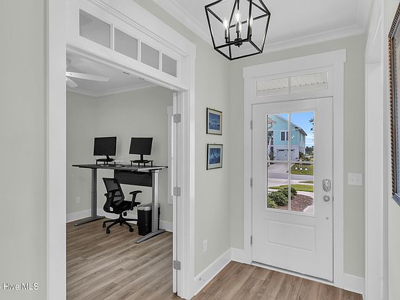 Immaculate Bayshore 1 by Logan Homes situated in the gated coastal community of Summerhouse on Everett Bay! Built in 2022, this 3 bedroom, 3 bath home offers a bright, open layout. Upon entry, you'll find a versatile room with French doors--ideal for a home office, study, or use as an additional bedroom. The dining area opens seamlessly into the spacious living room and designer kitchen, featuring quartz countertops, a large island, ample cabinet space, and stylish finishes, creating an inviting space for everyday living and entertaining. Enjoy outdoor living year round in the four seasons room overlooking tranquil Lake Catherine, a perfect backdrop for morning coffee or evening sunsets. Step outside to find a fenced backyard with peaceful lake views. The main floor primary suite and guest room provide comfort and convenience, while upstairs features a third bedroom or flexible bonus space, a full bath, and ample storage space.