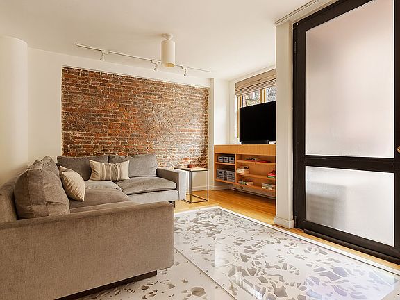 Set along a cobblestone street, just one block from Hudson River Park, 357 West 12th St, Residence 1E is an over 1,800 square-foot duplex composed for modern living. Natural light filters through the south-facing picture windows, highlighting the exposed brick, warm hardwood floors, and a generous loft-style layout that lends itself beautifully to living, dining, and work.