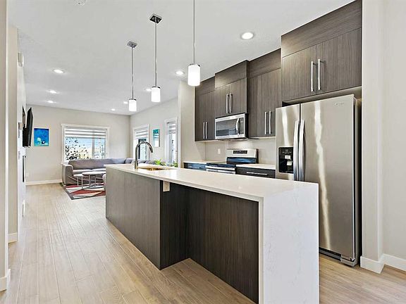 ** LOVE YOUR LIFESTYLE! * Dual Primary bedrooms + 3 bathroom + 2-car parking with an attached garage ** This modern 3-story air-conditioned 1615+ SF townhome is ideally located in the community of Sage Hill and close to the many amenities - Transit, parks, shopping, pathways, dog parks, community center, Beacon Hill, and FUN!  The spacious main living area features a large living room, an open kitchen, and a dining room, all of which have bright east-facing windows. The open "Chef's" kitchen features ample counter space, wood-style cabinet doors, white quartz waterfall-edge countertops, a pantry closet, and stainless steel appliances. BONUS: smooth top electric stove with OTR microwave, and water line service to the fridge with ice/water door dispensing. A sizeable east-facing outdoor 27' x 4'/6' upper deck is quickly accessed through the patio door and offers a nice place to enjoy the BBQ with a gas line on your summer evenings. BONUS: The great room offers an electric fireplace with a custom tile-faced wall detail. The upper floor features two good-sized bedrooms, both with private ensuite bathrooms. The primary bedroom layout features a private upper 10' x 6' balcony,  ensuite with a super-sized soaker tub / separate shower, and his/her closets. The second primary bedroom features soaring, high-vaulted ceilings. This home has everything you need with a functional yet stylish layout. A quick possession date is available! Call your friendly REALTOR(R) to book a viewing!