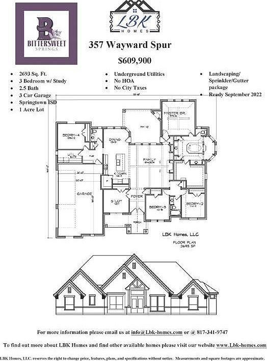 Traditional 4 Bedroom and a study this the plan for you!. The home is built with great craftsmanship and offers a great selection of upgrades with no upcharge. Master comes with garden tub, large separate shower and separate vanities. Interior will have stainless steel appliances and stone throughout home. Perimeter walls are foamed to provide efficiency and with a 16 Seer Unit. Some sprinklers and sod (front yard and 20 ft around sides and backyard), Underground utilities with Schools close by. No city taxes, No HOA. Ready September 2022! NEXT LINK FIBER WILL BE AVAILABLE!