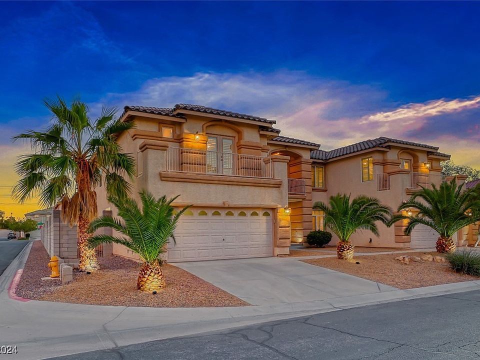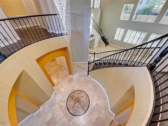 Welcome to an expansive 6,000 sq. ft. estate in Silverado Ranch, offering unparalleled elegance and space. Thoughtfully designed with dual primary suites, this home provides an upstairs retreat featuring a fireplace and a spacious sitting room, while the main-level primary suite also includes a fireplace, an indulgent bathroom, and an expansive walk-in closet for ultimate privacy and ease. Throughout the home, marble and stone finishes add a touch of sophistication, complementing the formal living and dining rooms and family room. Dual laundry rooms on each level provide added convenience, and the grand spiral staircase in the entryway creates an impressive welcome. The home is set on a spacious -acre corner lot and offers quick access to I-15, making commuting a breeze.