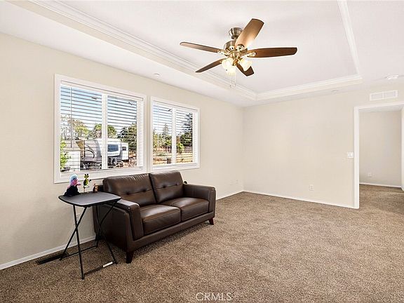Enjoy sustainable living with your owned solar system, two sheds, a large chicken coop, and ready-to-use garden beds. Relax on the covered front porch, perfect for morning coffee or evening sunsets. Inside, the home features elegant details, including a coffered ceiling with crown molding and recessed lighting in the kitchen. All appliances are included: washer, dryer, and refrigerator. The premier bedroom features a walk-in closet.